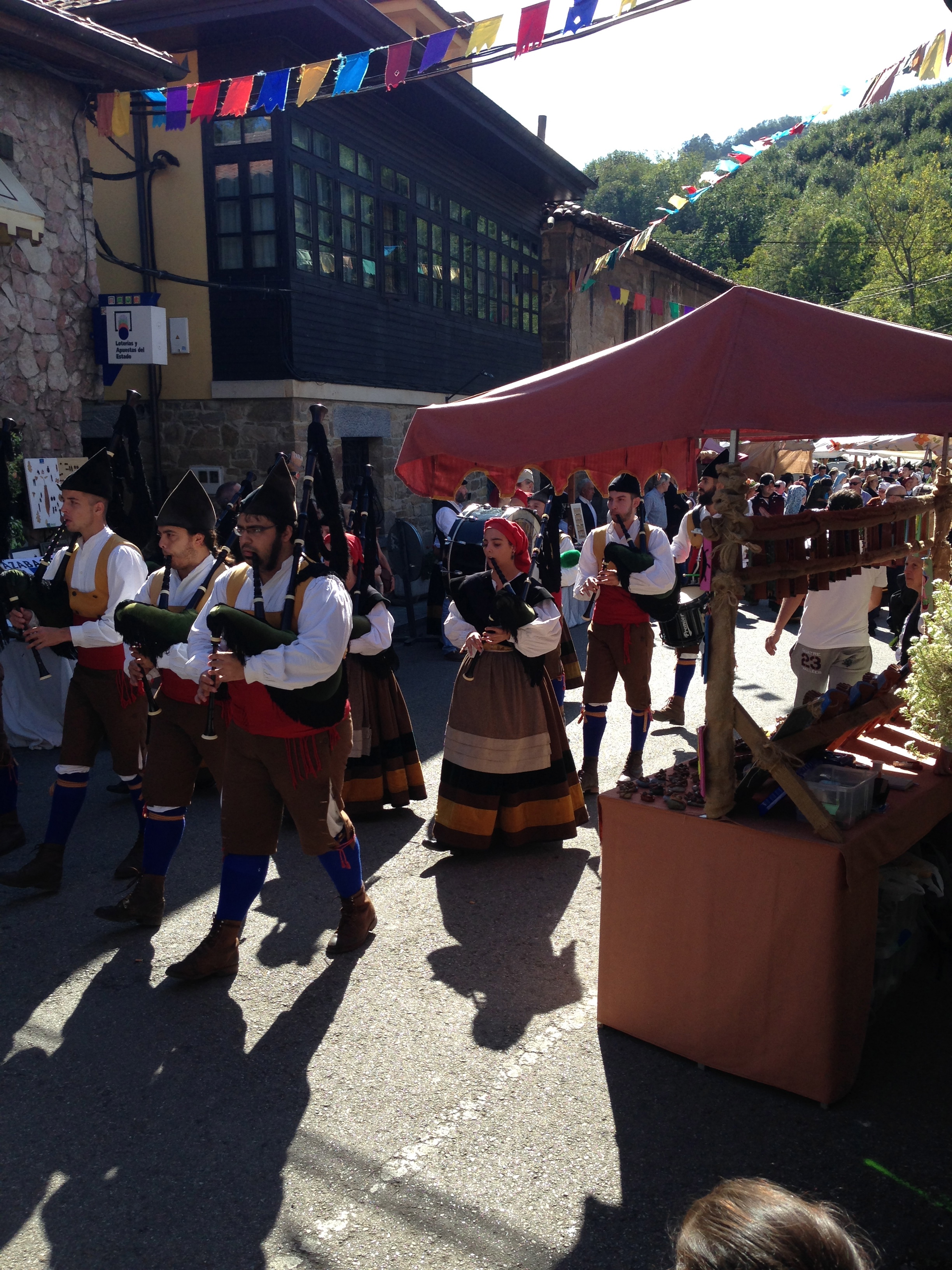1. En este pueblo acicalado para la ocasión, con callejuelas flanqueadas por hórreos y construcciones tradicionales, junto a un serperteante río, se ofrecía a los numerosos visitantes casi un centenar de expositores artesanales: artesanía variada (madera, cuero, cristal, carbón, azabache, plantas,etc), abalorios (joyería, juguetes,etc) alimentación (papas canarias, tortos con picadillo, sidra a tutiplén, delicias de Santoña, pastelería casera, empanadas, etc), antigüedades ( herraduras, sifones, etc), cultura ( libros sobre Asturias y los asturianos,etc).