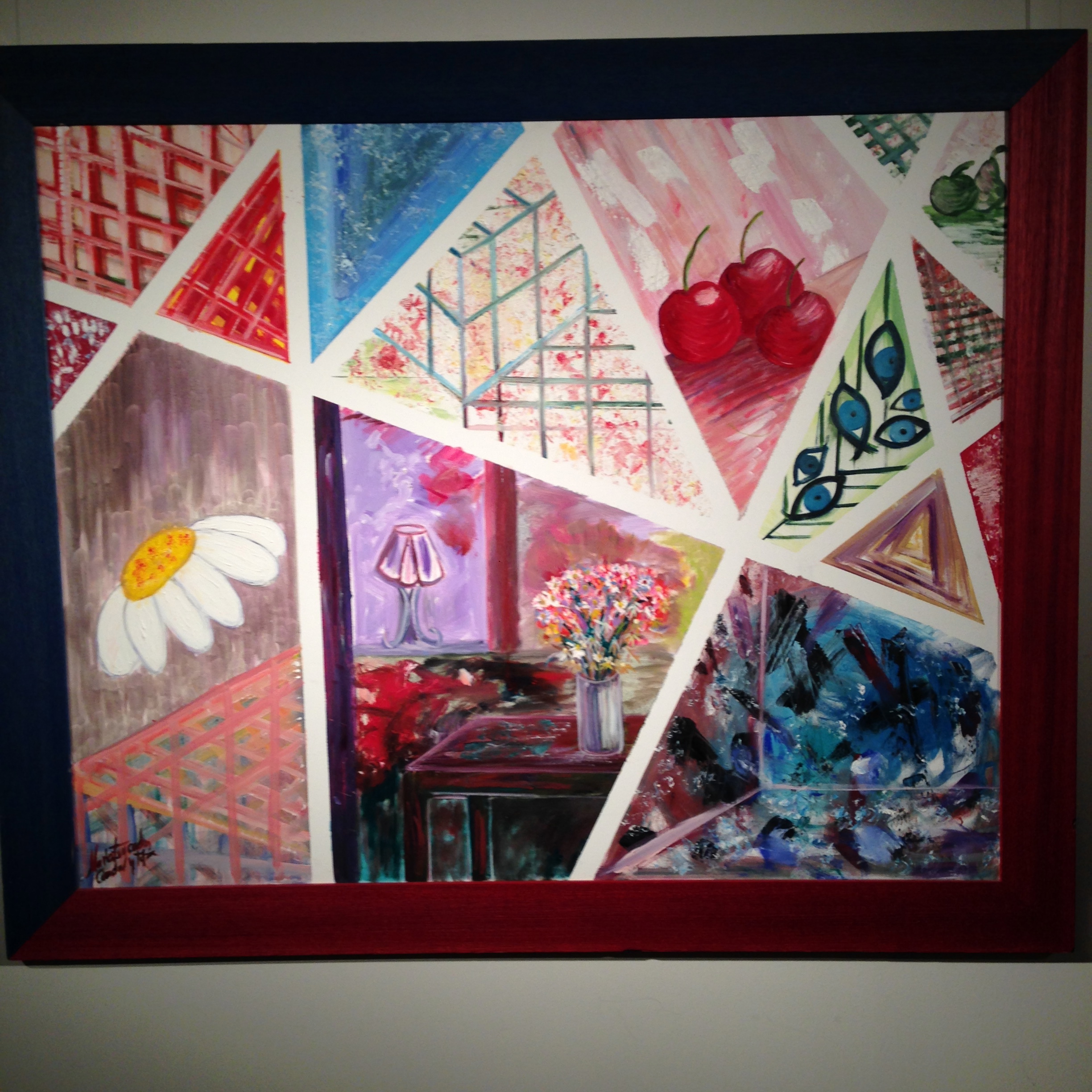 Exposición en Cambre de María FernandaSin embargo, el profano es capaz de detectar denominadores comunes en estas obras de María Fernanda, mas allá del colorido que va directo al corazón, pues en numerosos lienzos se adivina el vórtice o espiral en rotación, así como la pirámide o las salpicaduras de originales materiales, y por encima de todo, un curioso reto al juego con el espectador que, si se aleja ve el lienzo como si fuera el fecundo y colorista Amazonas desde una avioneta, pero si se aproxima el lienzo ofrece detalles minimalistas, unos escondidos, otros exuberantes y otros enigmáticos, que van abriendo ramilletes de sensaciones como las muñecas rusas. Exposición en Cambre