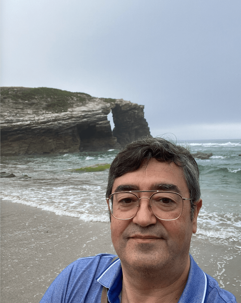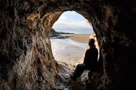 El sol parecía haberse ocultado discretamente. La arena estaba húmeda pero compacta. Numerosas rocas emergían de la arena con formas majestuosas. La playa estaba cercada: por un lado, el mar agitado pero embravecido y por otro lado, una escarpada ladera de estratos de sólida roca.  Maravilloso: no es de nadie y es de todos, gratis total. El mar siempre igual y siempre diferente. Todo digno de una postal.