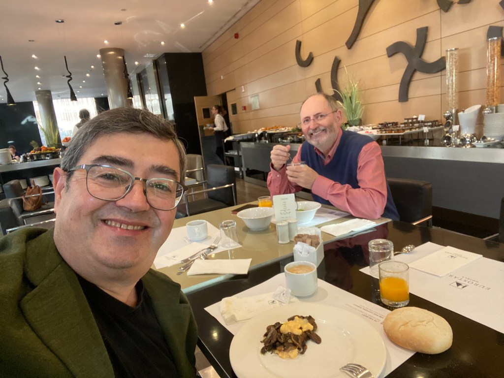 Entre pasillos, en el salón de desayuno del hotel, en la cena, o en la entrada de la sala de conferencias, brotaba el encuentro, el cruce de miradas y nuestro algoritmo mental rápidamente nos señalaba quiera era amigo, aunque no situásemos las coordenadas del origen de la amistad. Nos saludábamos o abrazábamos. La densidad de buen rollo, energía positiva y complicidad era elevada.