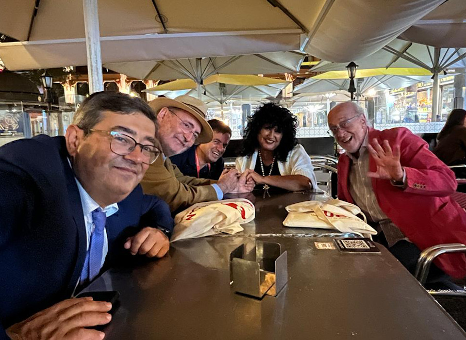 Pero en esos momentos de cafés compartidos, así como en la cena celebrada en el restaurante Hacienda del Cardenal, tuvo lugar el intercambio de abrazos, saludos e impresiones. Ahí se vertían informaciones, aplausos y críticas, y se decía lo que solo se puede decir en confianza. Aunque imperaban formales vestidos y trajes, la campechanía fue aflorando de la mano del tuteo y cómo no, del intercambio de direcciones de correo electrónico o teléfonos.