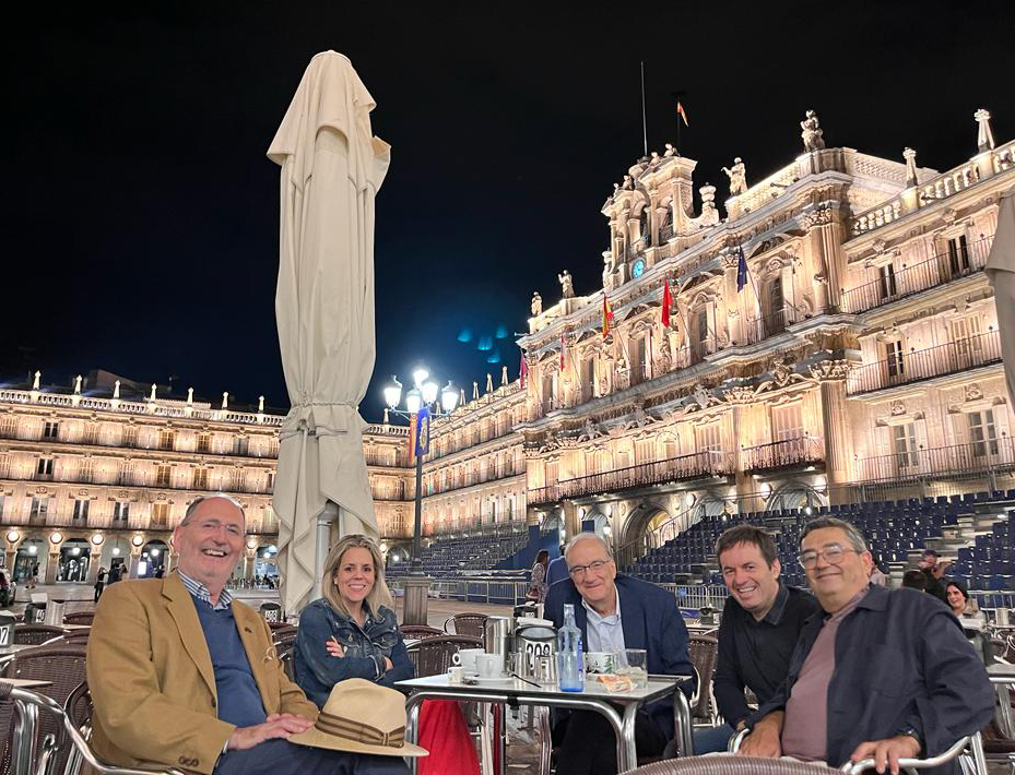 Viene al caso, porque tuve ocasión el pasado martes de asistir a una lectura de una tesis doctoral en la Universidad de Salamanca sobre “Riesgos emocionales en la organización”, presentada por Luis Barrio Tato (por cierto, mereció la máxima calificación, –yo era humilde suplente en el tribunal calificador), lo que nos permitió disfrutar de una cena nocturna deliciosa en Las Caballerizas de Salamanca (que en su día califiqué de Cheers ibérico), donde las anécdotas y las sonrisas rivalizaban en protagonismo con los embutidos y demás delicias gastronómicas, bajo la dirección de Maese Antonio, todo seguido, claro está, de una tertulia a medianoche en una terraza de la bellísima Plaza Mayor.