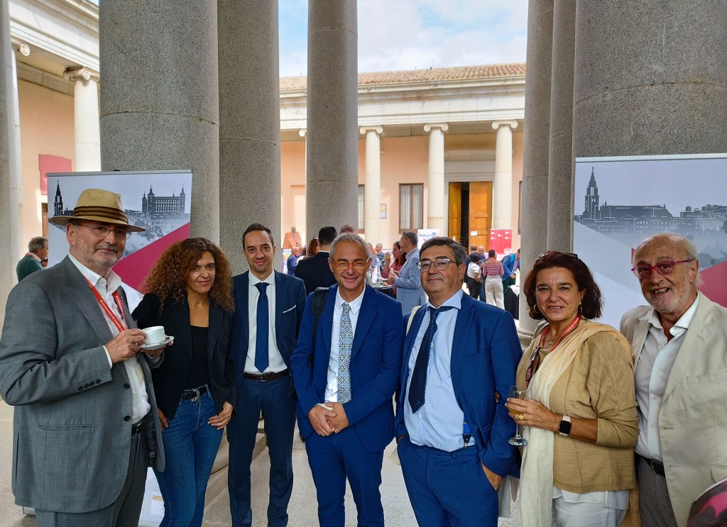 Pero no hay uno sin dos, así que al día siguiente participé como ponente en Toledo en un Congreso Nacional sobre la Ley Orgánica del Sistema Universitario, organizado por la Universidad de Castilla-La Mancha, y al margen de las densas y vivas enseñanzas que las aulas ofrecieron, en el exterior, en la plaza interior del claustro, tuvimos ocasión de departir los asistentes, compartiendo café y vinito, con algún pinchito. También «disfrutamos», por cierto, de paseos por angostas callejuelas y «trekking» por sus empinadas cuestas.