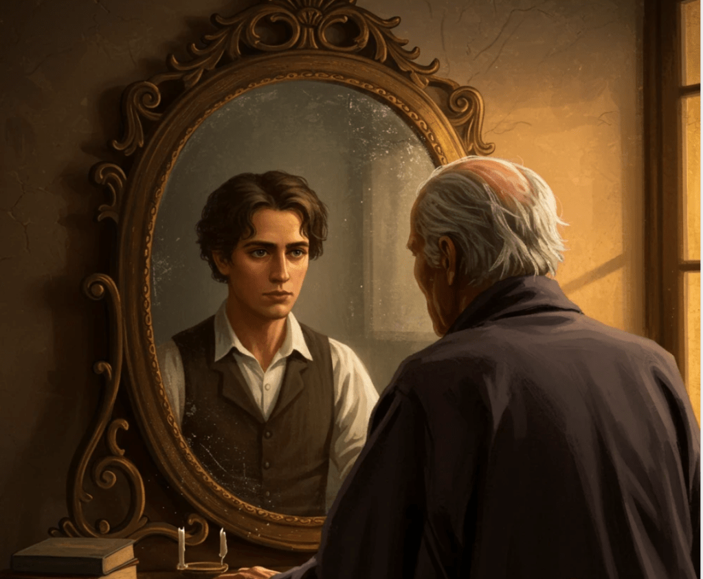 Lo que aflora, bajo esa máscara grotesca, es una verdad más honda: sí, el cuerpo se encoge, pero la mirada se expande; sí, la memoria falla —o finge hacerlo— en los nombres, pero acierta en lo esencial. Ese joven que parecía dispuesto a devorar el mundo ha cambiado en la foto, pero no ha desaparecido: se ha transformado en alguien que lo saborea con más precisión y ahora prefiere la intensidad de un sorbo a la voracidad de un banquete.